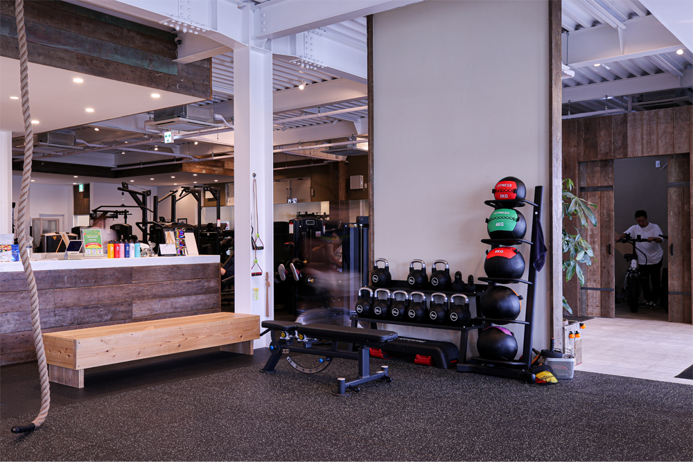 1Fに広々とした空間で、ストレッチや体幹トレーニング、器具を使ったエクササイズなど、自分スタイルのトレーニングを自由に行うことができます。