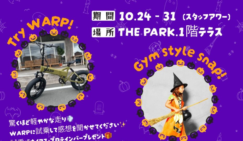👻🎃ハロウィンイベント開催🎃👻 2025.10.20 2025.10.29 新着情報 記事のタイトルとURLをコピーする 👻🎃ハロウィンイベント開催🎃👻 10/24(木)〜31(木) の期間中、 WARPを試乗すると… ✨オイコス&プロテインバープレゼント!✨ さらに‼️ 📸フォトブースで写真を撮ってSNS投稿すると、 お好きな方をもう1つもらえるチャンス🤩 場所:THE PARK. 1階テラス 期間:10/24〜31(スタッフアワー) THE PARK.に来たらぜひTRY WARPしてみてください🚲💨 \THE PARK.会員様限定/ 前の記事 本日よりハロウィンイベント開催中🎃💜 次の記事
