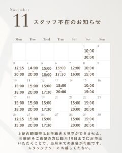 スタッフ不在時間のお知らせ🕔
