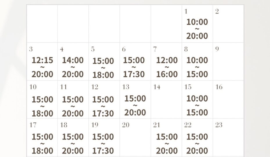 スタッフ不在時間は一覧表でご確認いただき、ご用件がある方は不在時間を避けてお越しください🤲