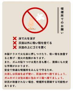 ルールを守っていただけない場合、やむを得ず喫煙所を閉鎖いたします。